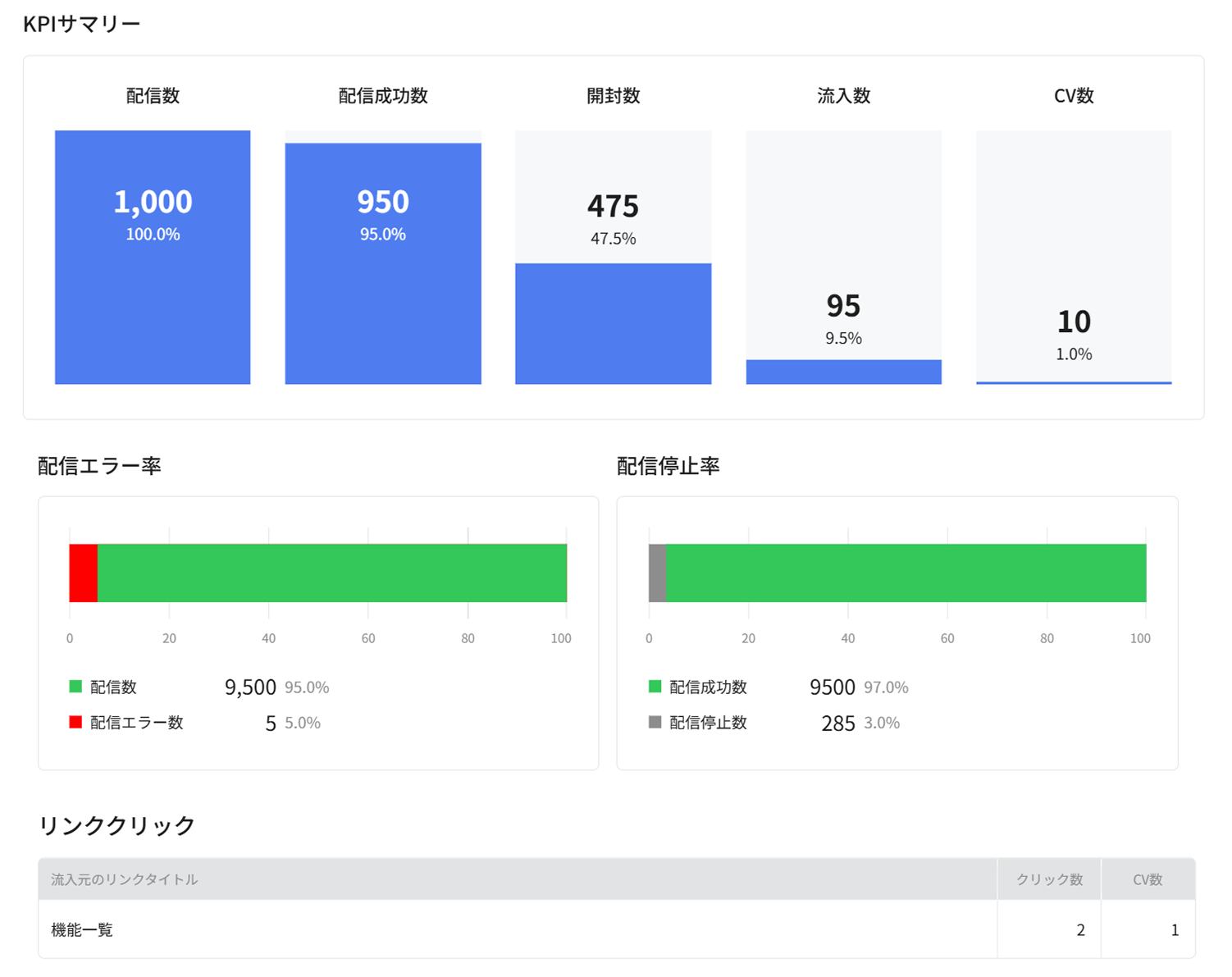 開封数やリンククリック数などは自動で計測され、レポートで確認できます。